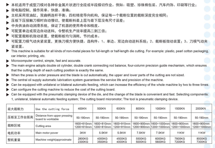 全自动进料精密液压四柱式裁断机(可选择单边、双边自动进料系统)